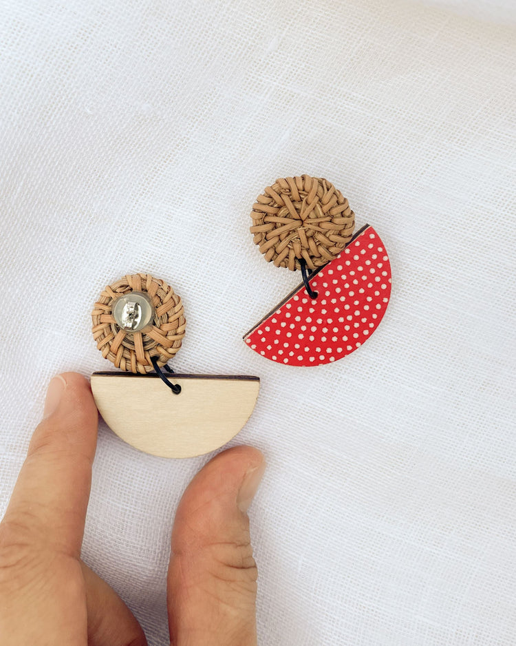 THIS EARRING MODEL IS DECOUPAGED ON ONE SIDE