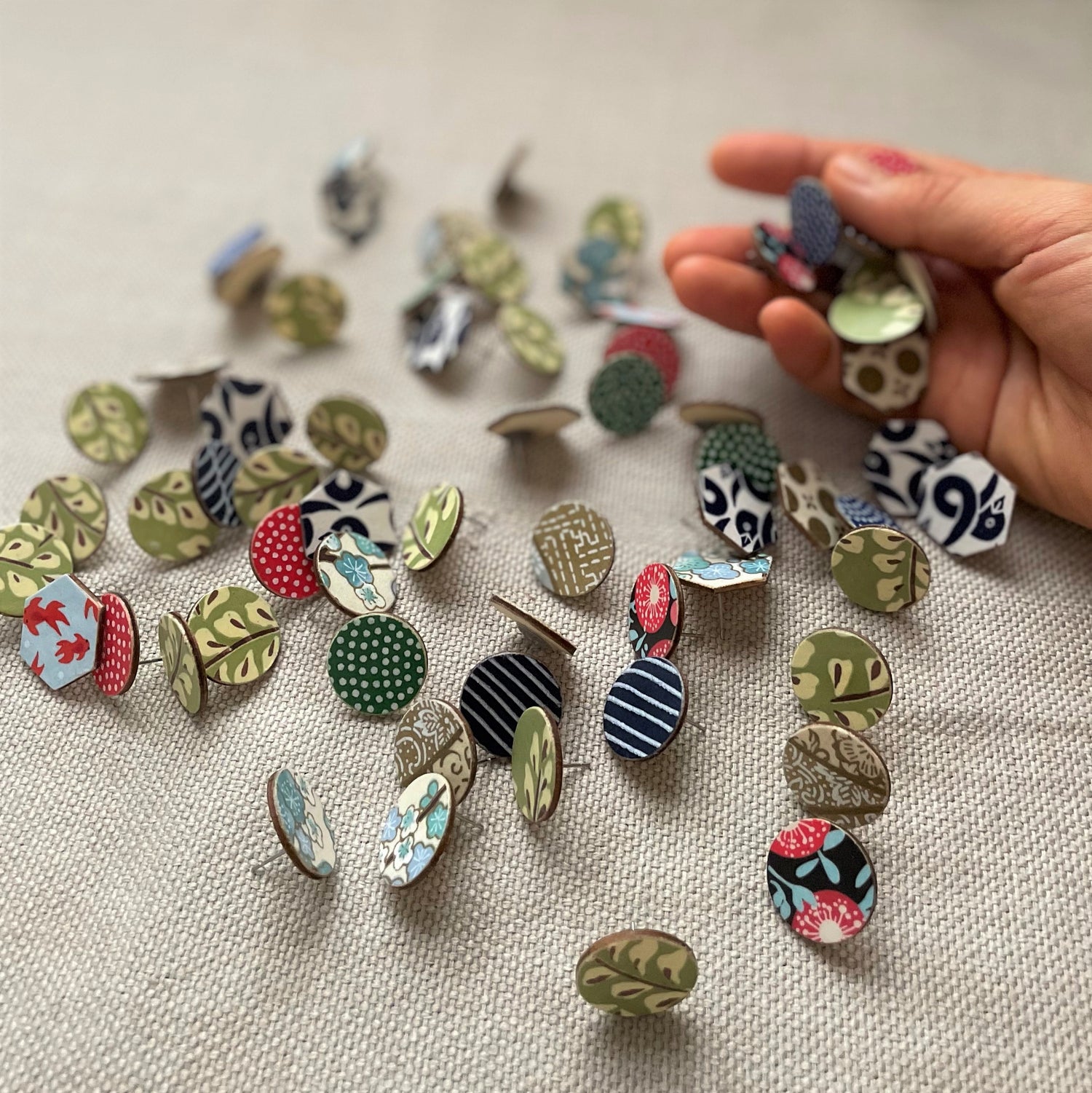 Mariye’s popular decoupaged earrings were born to not waste gorgeous scrap papers leftover from her home décor creations - a fun way to give another life materials that would otherwise be thrown away.